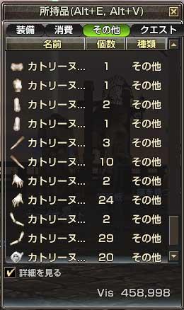 カトリーヌのアイテムがこんなに貯まってたよ。胸とか色々露店で売ったりあげたりしてたのあるからこれが全部って訳じゃないけど、うわーーー、やっとカトリクエ、終わりに出来そうだよ!
